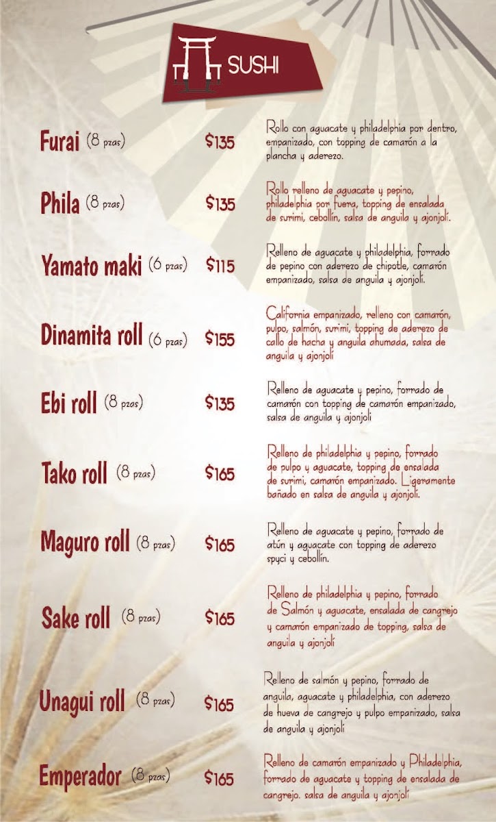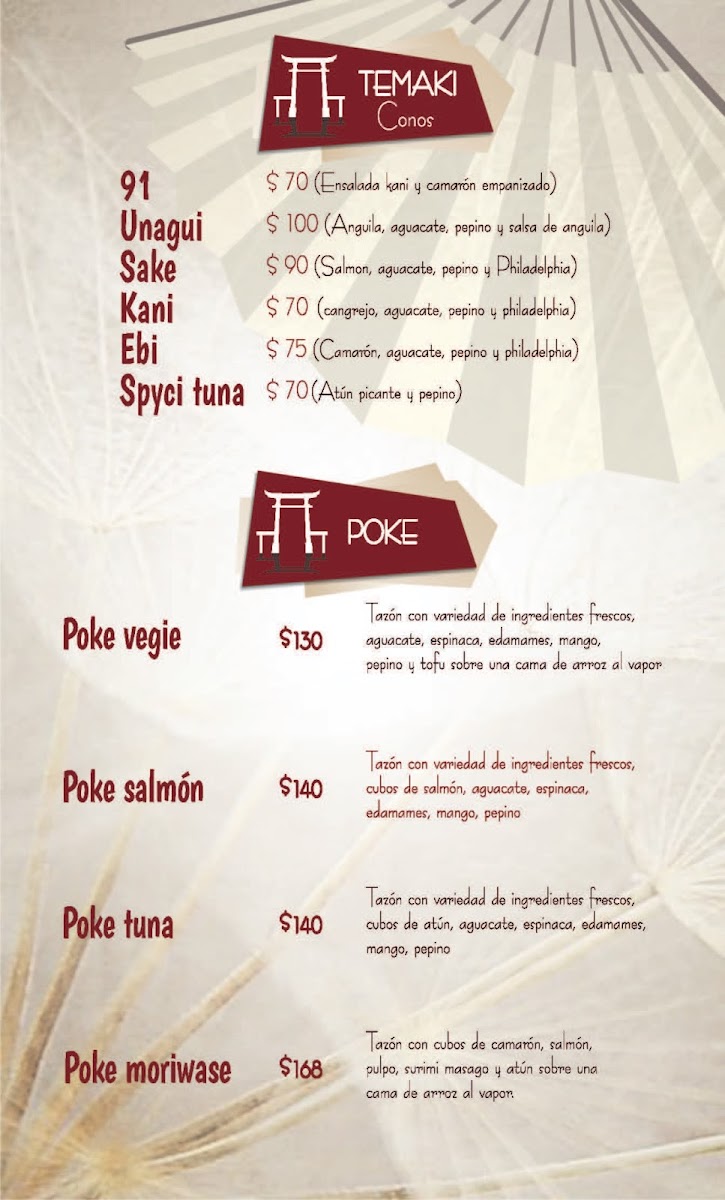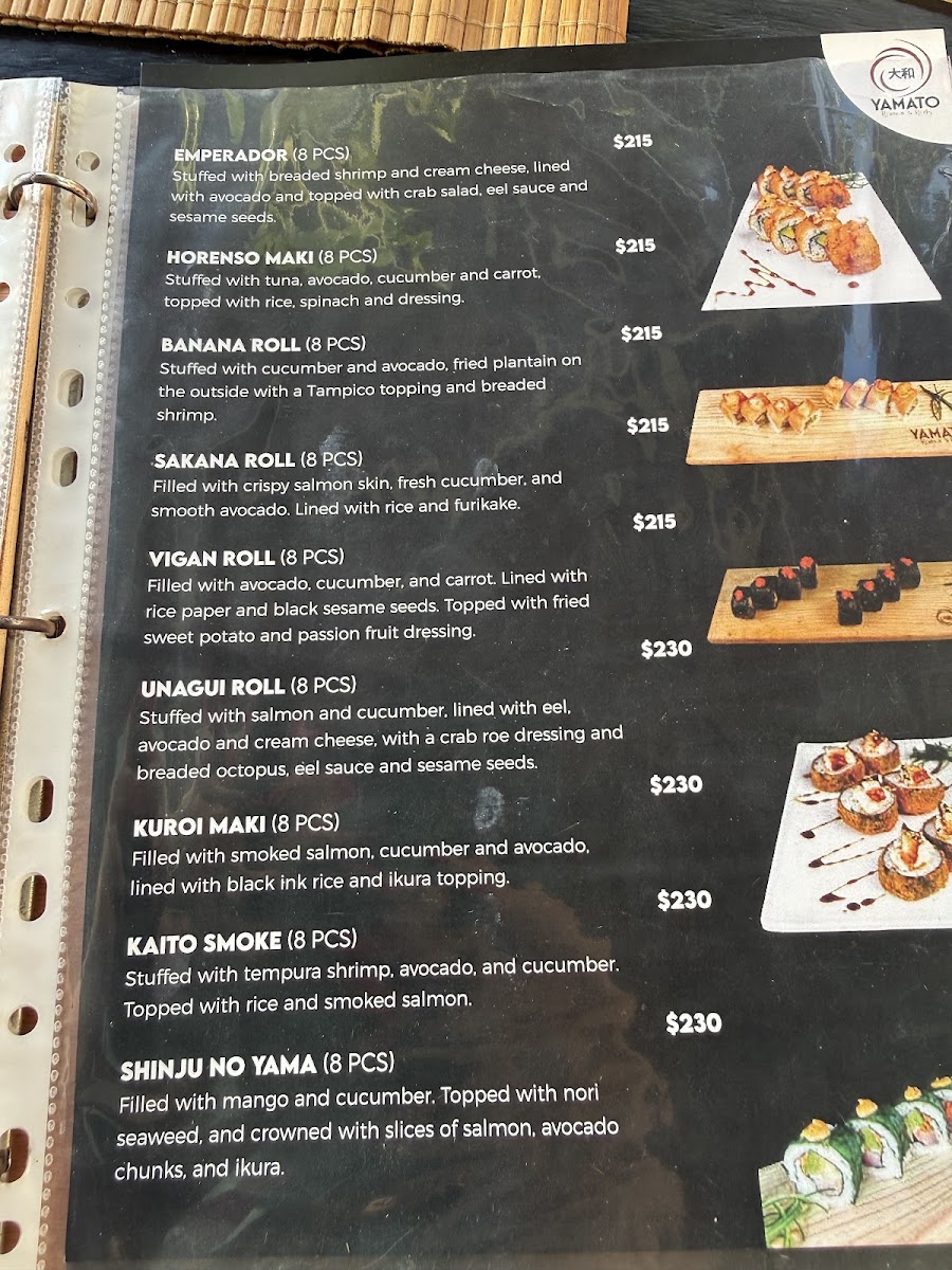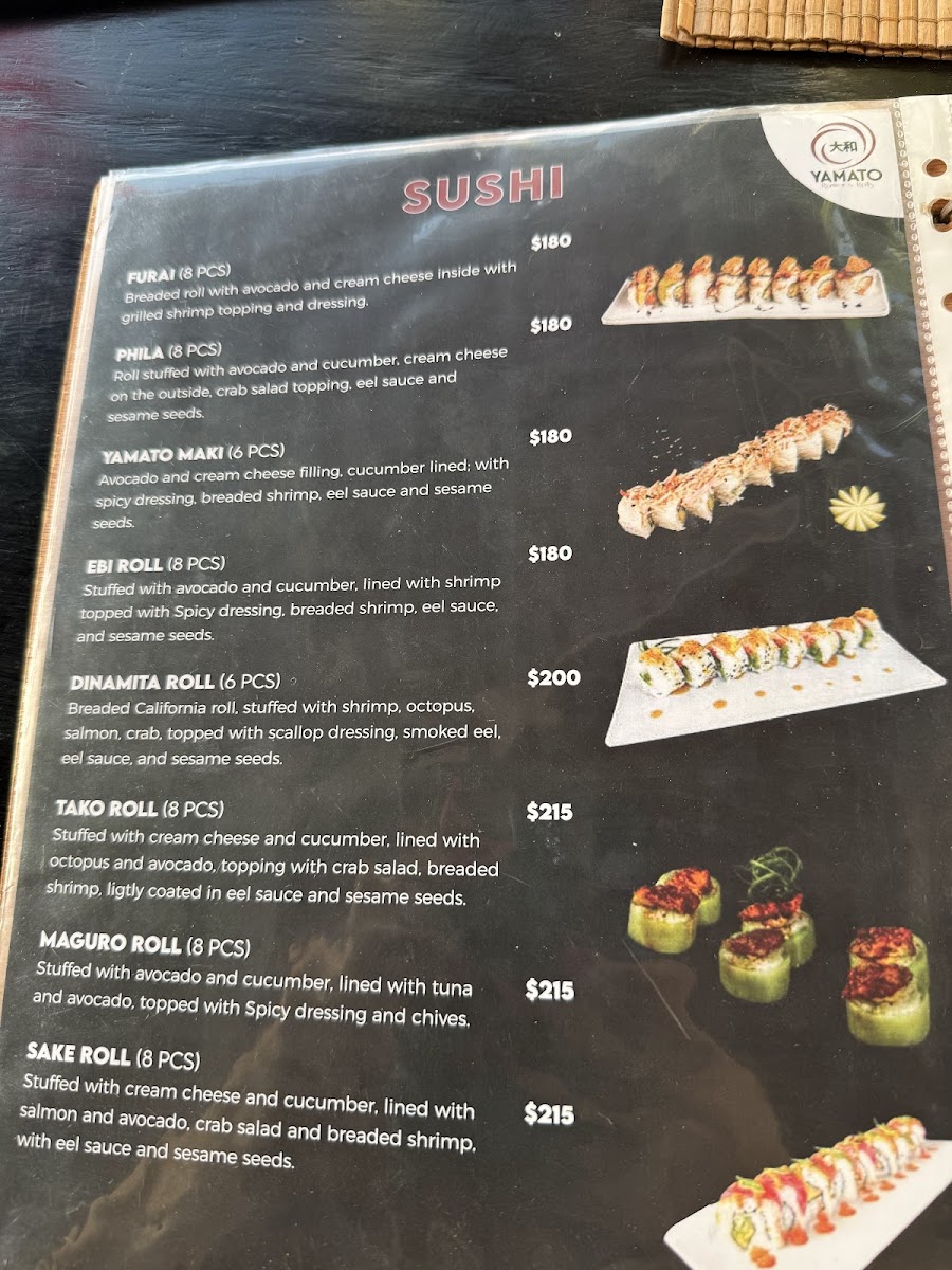 The menu at Yamato Ramen & Rolls offers a delightful array of dishes with a focus on Japanese flavors, perfect for sushi and ramen enthusiasts. The Temaki options include favorites like Temaki Unagui and Temaki Spicy Tuna. For poke lovers, the Poke Tuna and Poke Vegie are standout choices, while the Poke Moriwase offers a more varied selection. The Niguiri section includes options such as Niguiri Kani, Niguiri Ebi Camarón, and Niguiri Siake Salmón. If you’re in the mood for something cooked, the Tepanyaki Camarón and Tepanyaki Pollo are delicious choices, along with a Tepanyaki Vegetariano option for plant-based diners. The sushi menu features a range of rolls including the Sake Roll and Unagui Roll. For something more indulgent, the Plátano Tempura and Helado Frito are perfect desserts to finish off the meal. If you prefer a lighter start, the Edamame and Gyozas are tasty appetizers. For hearty main dishes, Yakimeshi Camarón and Yakimeshi Pollo provide satisfying rice options. The ramen selection is diverse, with offerings like Tempura Udon, Ramen Kai, and Vegie Ramen. The menu is well-balanced, with a blend of raw, grilled, and fried options, ensuring there's something to suit all tastes.